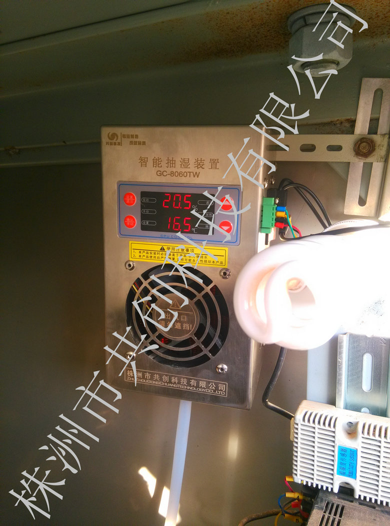 現(xiàn)場環(huán)境描述:變電站位于郊區(qū),梅雨季節(jié)長期濕度達(dá)80%RH。變電站戶外GIS斷路器空間1.5立方。安裝抽濕器4小時(shí)后完quan解除至今。現(xiàn)場濕度目前控制在70%RH。